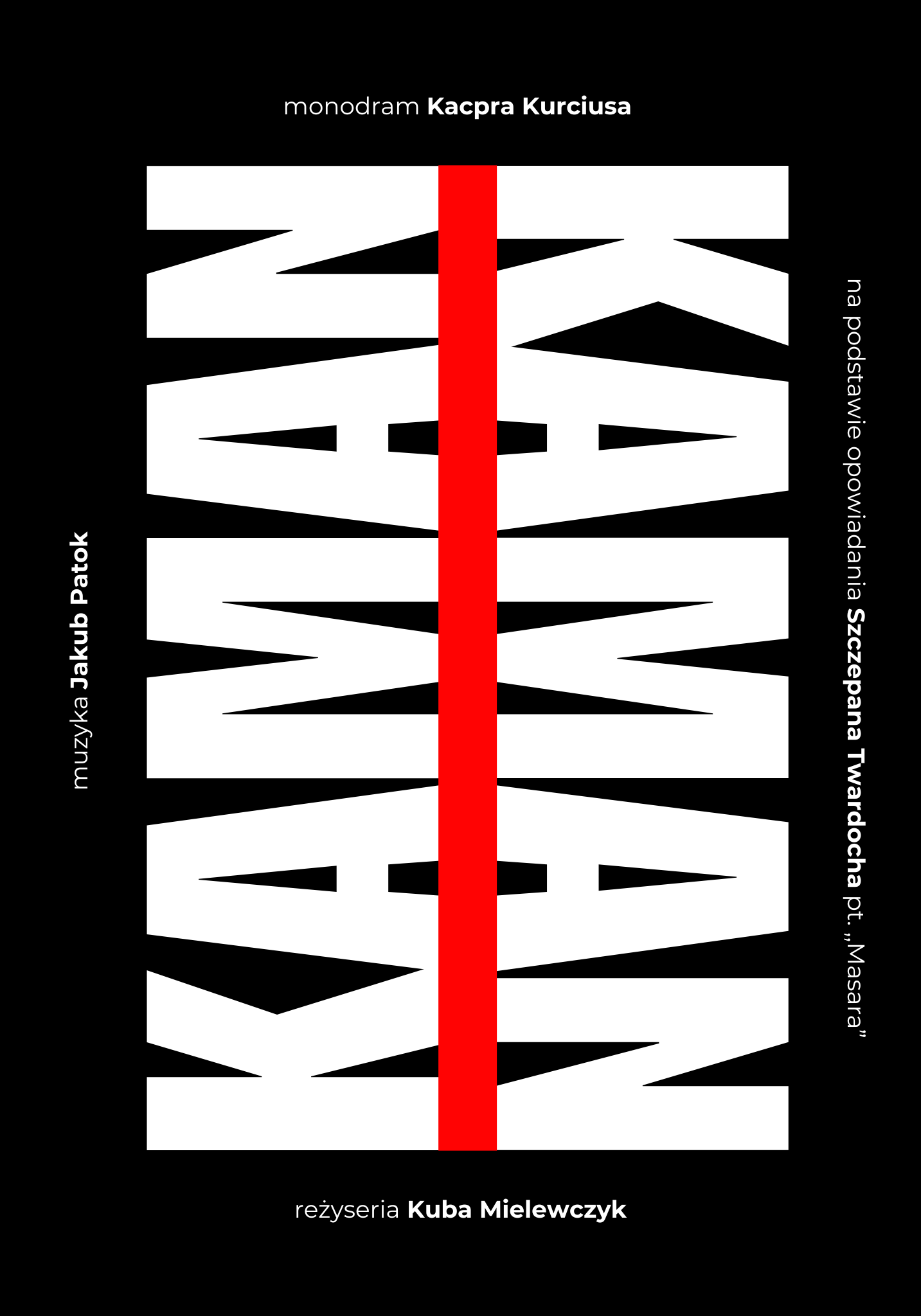 Monodram Kacpra Kurciusa w reżyserii Kuby Mielewczyka, oparty na opowiadaniu Szczepana Twardocha „Masara”, to poruszająca historia Marka „Kamana” Kamienieckiego, undergroundowego muzyka, który staje w obliczu kryzysu męskości, samotności i wewnętrznych rozterek.